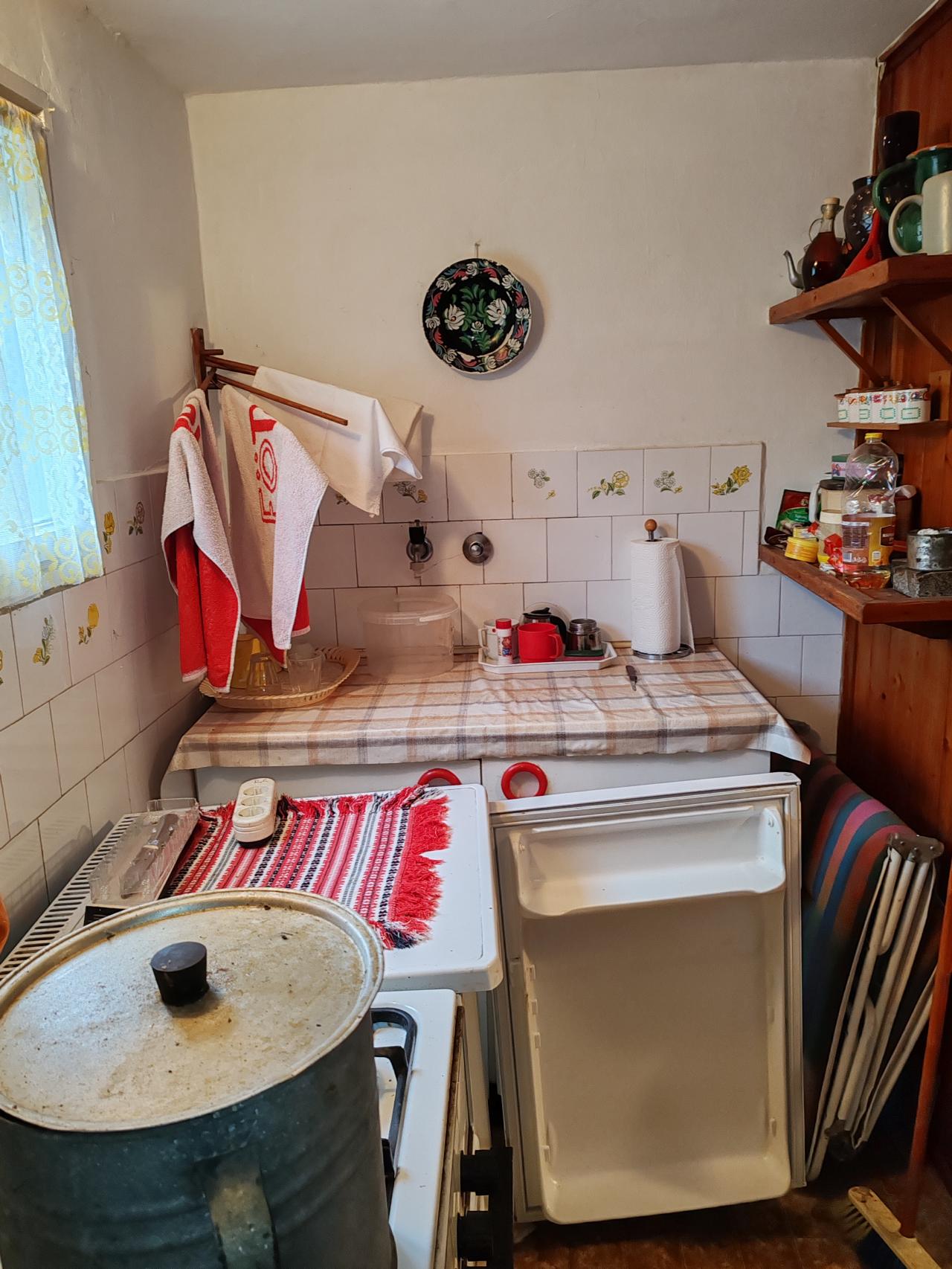 Fürdőszoba nincs,de benn a víz az épületben,gardrób helyén kialakítható.
